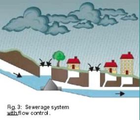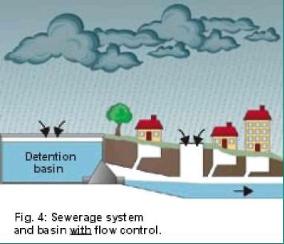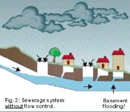 Intense showers are often short and local,and they only cause full-flowing pipes in some places, and for a short time. The solution is therefore retaining the excess water in other places of the system during the relevant time interval. That is - where there is room for it - utilising those places for storage. The solution functions in far most precipitation situations and it does not require any investments in larger pipes or in basins, it only requires flow control with suitable flow regulators. |